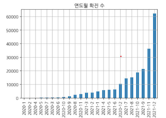 year_month.plot(kind="bar", grid=True, title="연도월 확진자수")