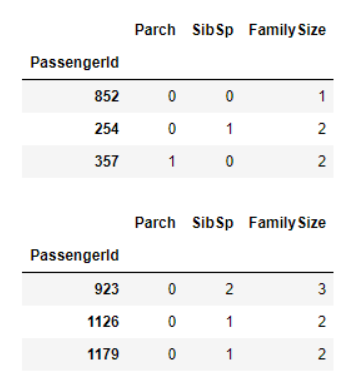 display(train[["Parch", "SibSp", "FamilySize"]].sample(3))