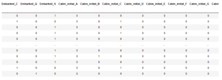 pd.get_dummies(train[["Fare", "Age", "Embarked", "Cabin_initial"]])