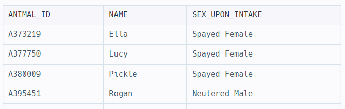 SELECT ANIMAL_ID,