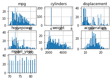 df.hist(bins = 50)